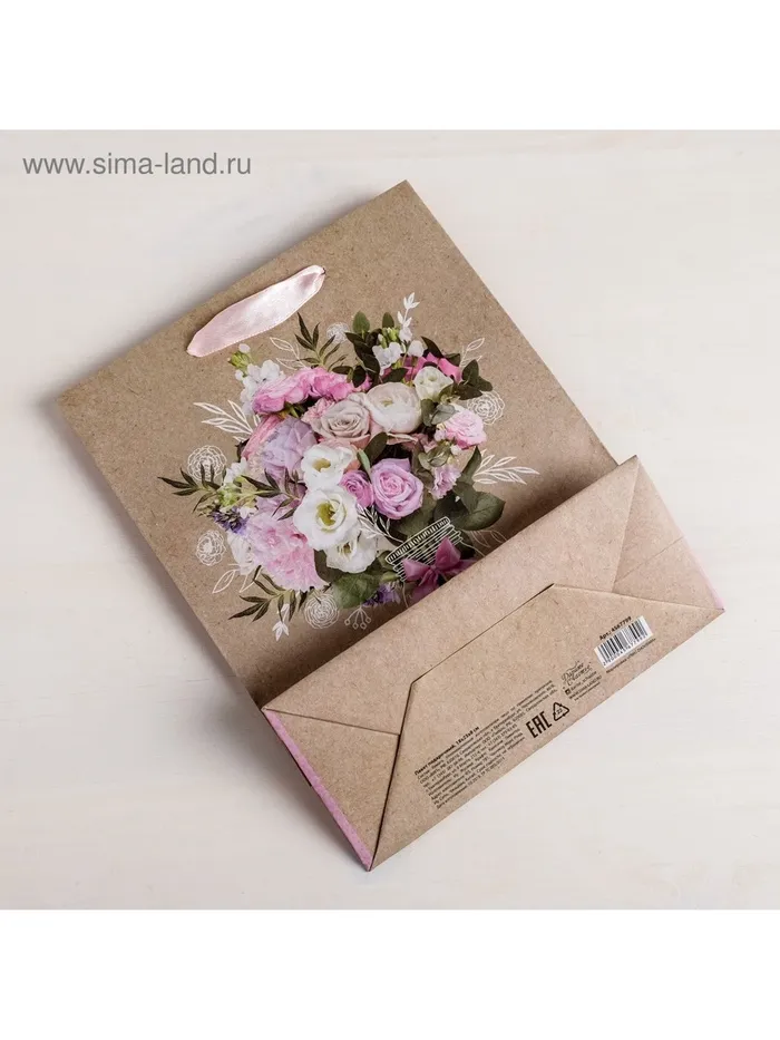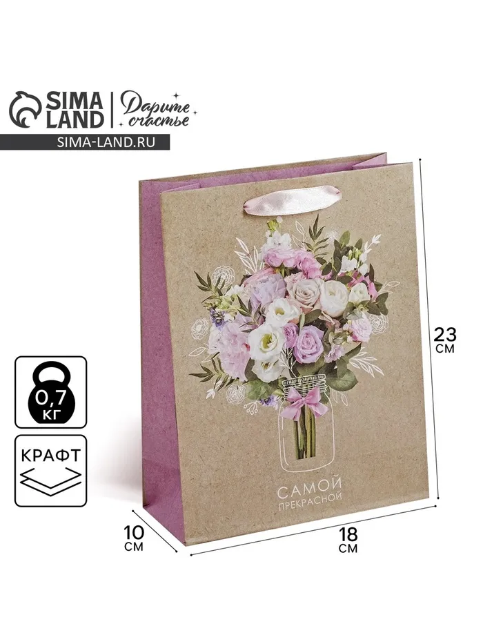 Пакет подарочный крафтовый, упаковка, «Самой Прекрасной», MS 18 х 23 х 10 см — Характеристики