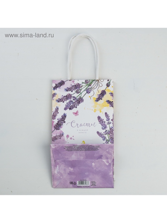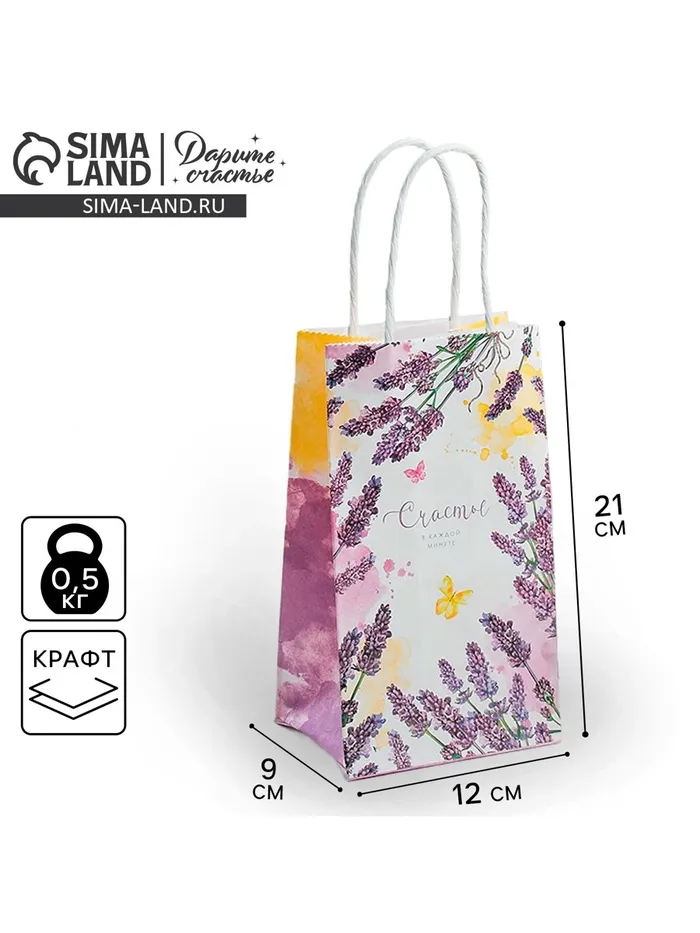 Пакет подарочный крафтовый, упаковка, «Счастье в каждой минуте», 12 х 21 х 9 см — Характеристики