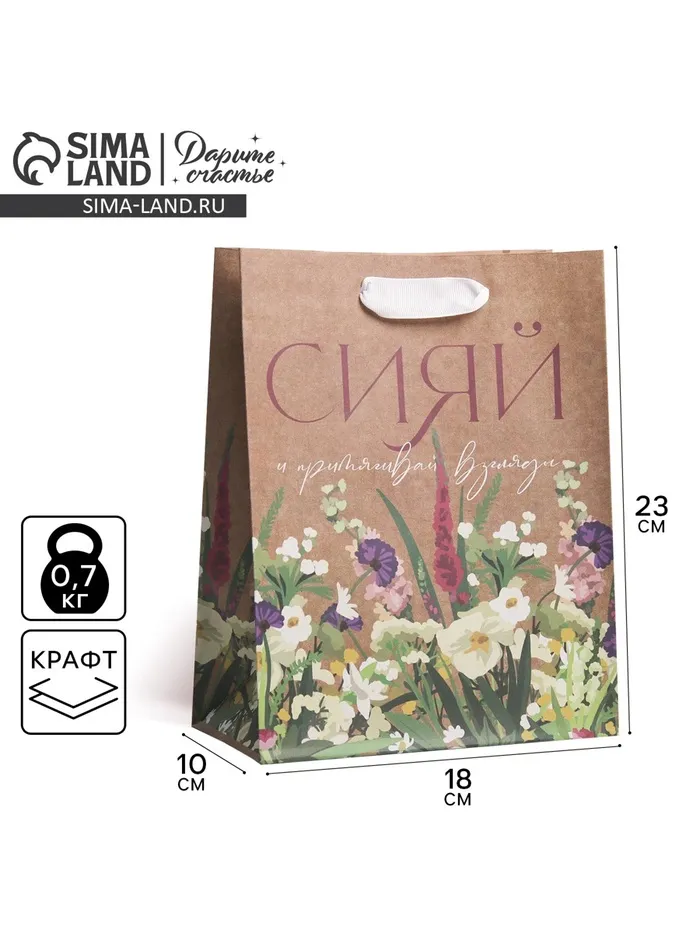 Пакет подарочный крафтовый, упаковка, «Сияй», MS 18 х 23 х 8 см — Характеристики