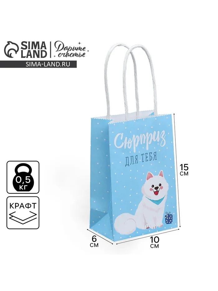 Пакет подарочный крафтовый, упаковка, «Сюрприз для тебя», 15 х 10 х 6 см — Характеристики
