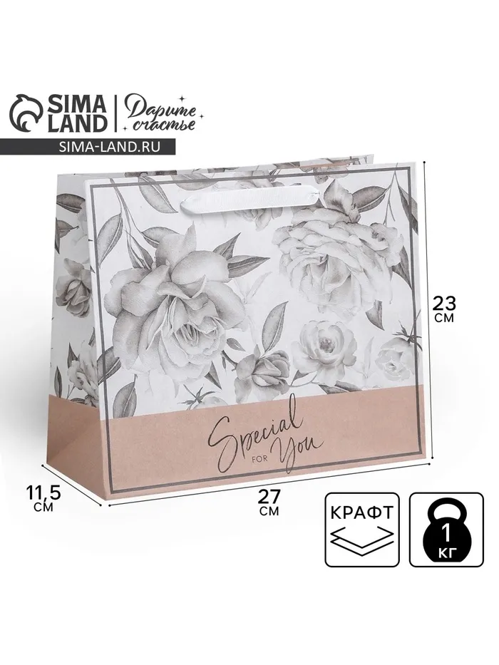 Пакет подарочный крафтовый, упаковка, Special for you, 27 х 23 х 11.5 см — Характеристики