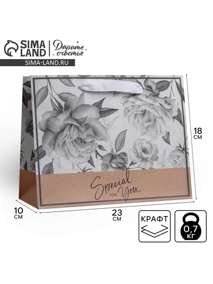 Пакет подарочный крафтовый, упаковка, Special for you, MS 23 х 18 х 10 см — Характеристики