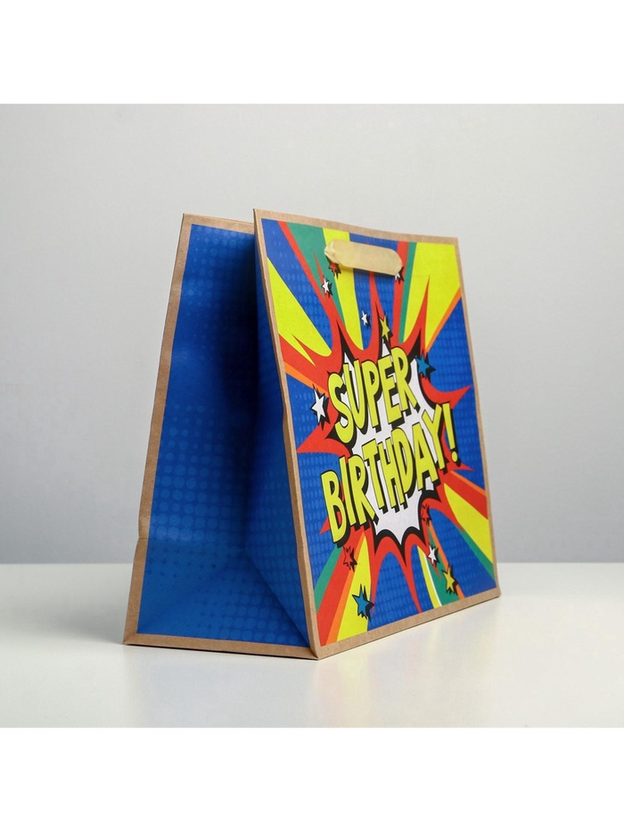 Пакет подарочный крафтовый, упаковка, Super birthday, ML 27 х 23 х 11.5 см — Характеристики