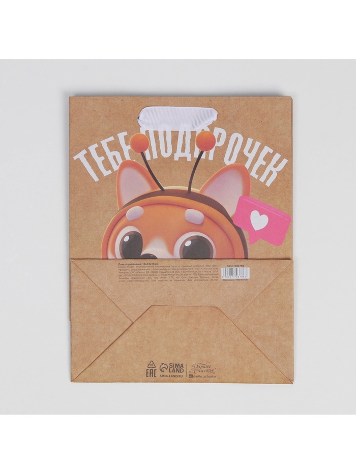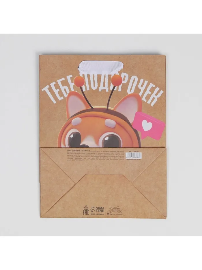 Пакет подарочный крафтовый, упаковка, «Тебе подарочек», MS 18 х 23 х 8 см — Характеристики
