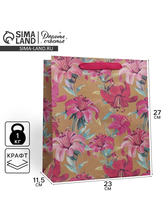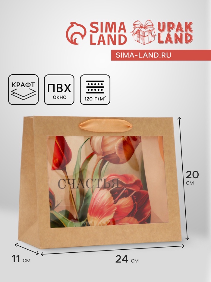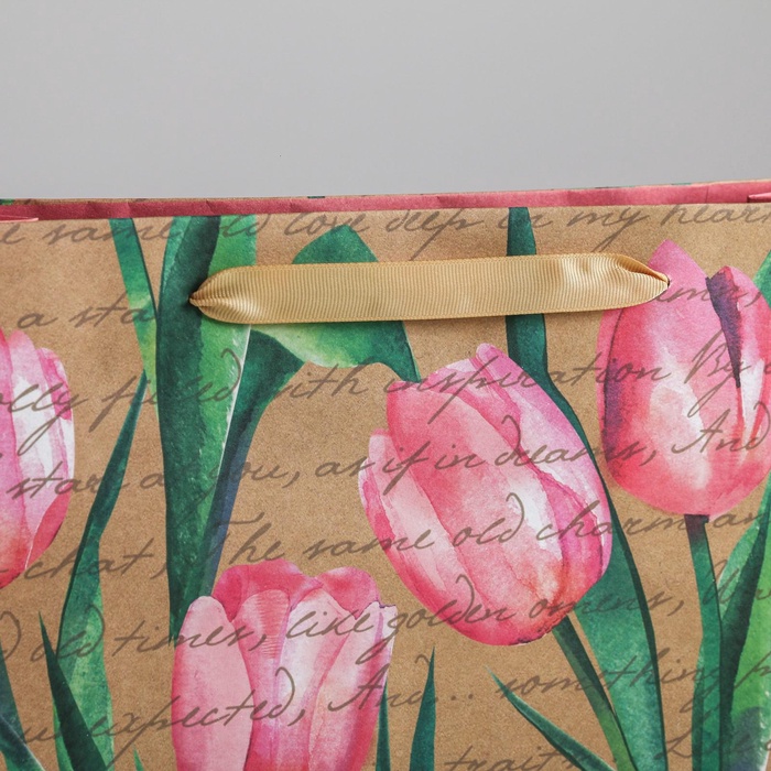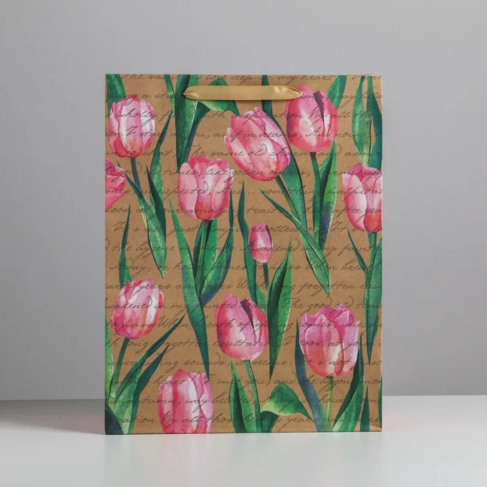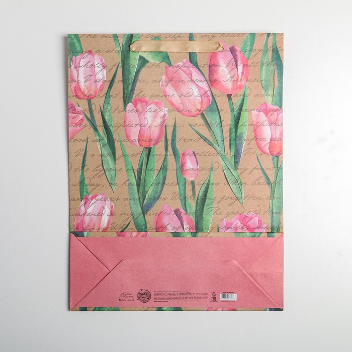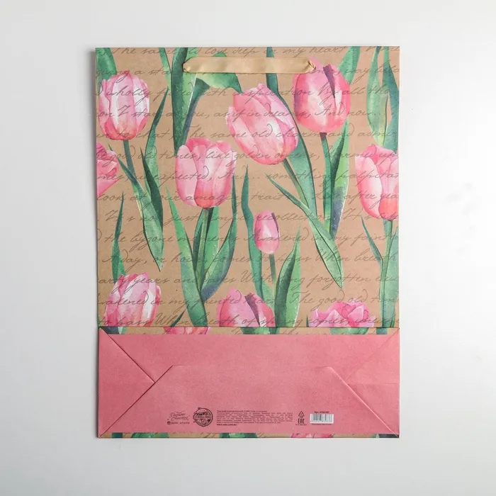 Пакет подарочный крафтовый, упаковка, «Тюльпаны», L 31 х 40 х 11.5 см — Характеристики