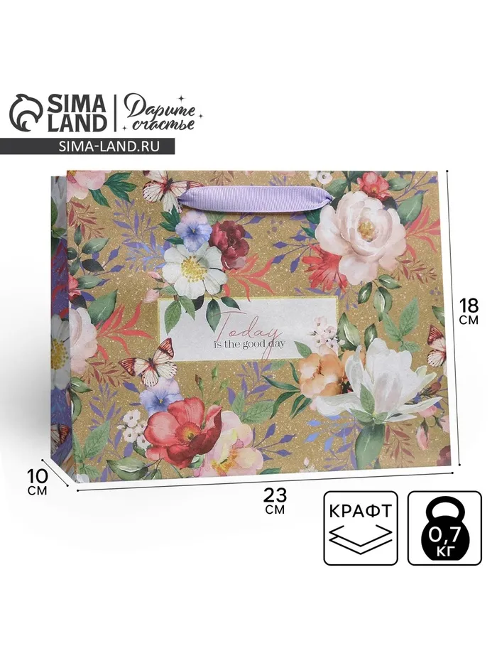 Пакет подарочный крафтовый, упаковка, Today, 23 х 18 х 10 см — Характеристики