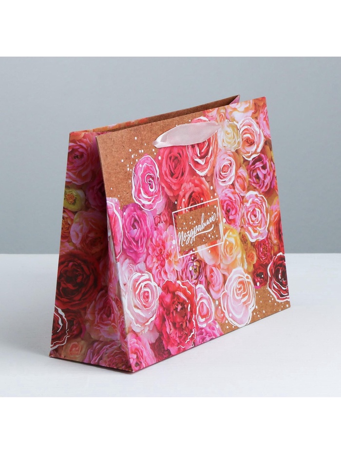 Пакет подарочный крафтовый, упаковка, «Цветочное настроение», L 40 х 31 х 11.5 см — Характеристики