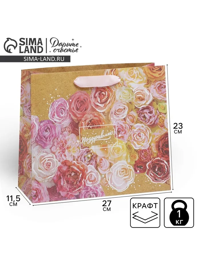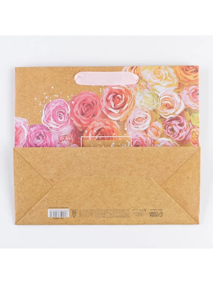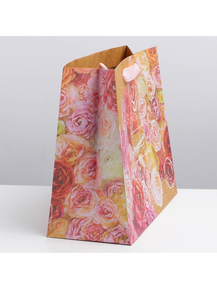 Пакет подарочный крафтовый, упаковка, «Цветочное настроение», ML 27 х 23 х 11.5 см — Характеристики