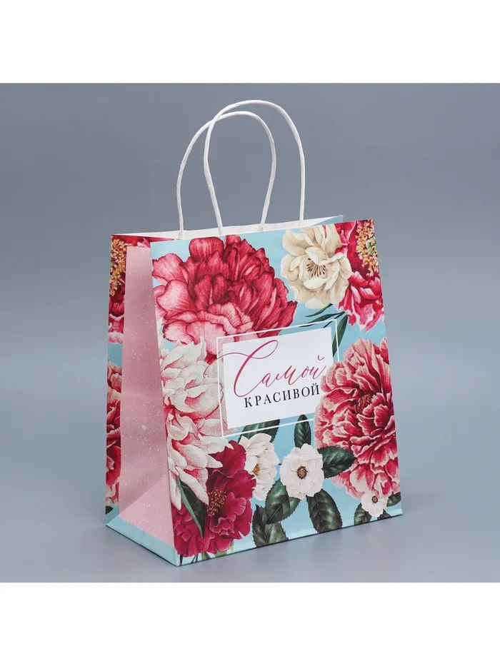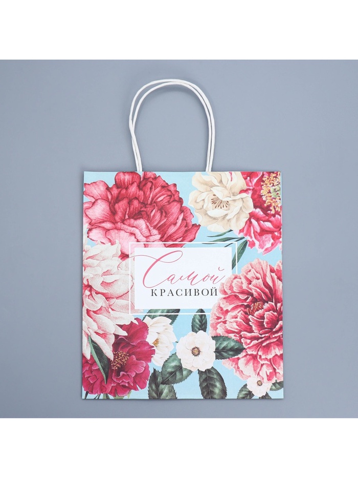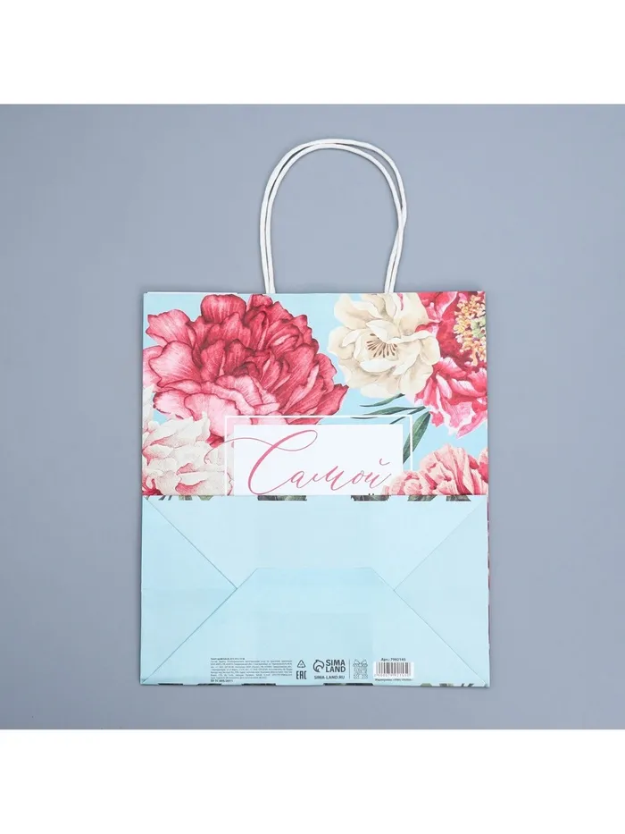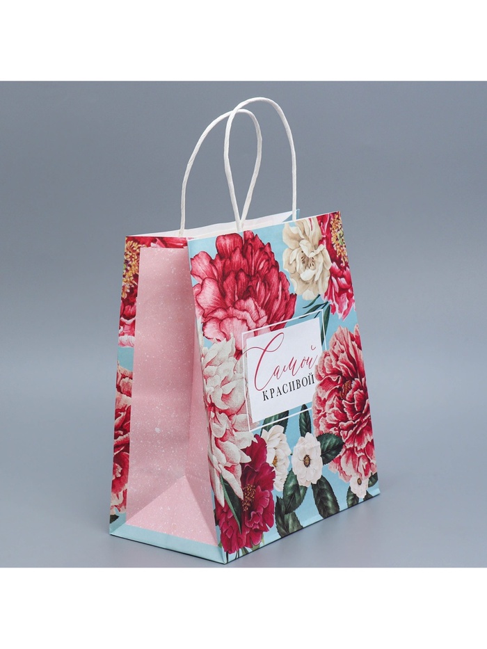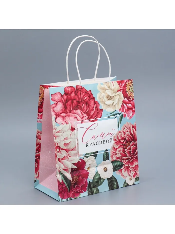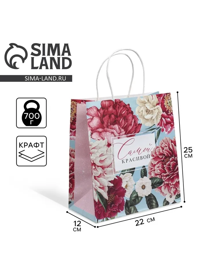 Пакет подарочный крафтовый, упаковка, «Цветочный», 22 х 25 х 12 см — Характеристики