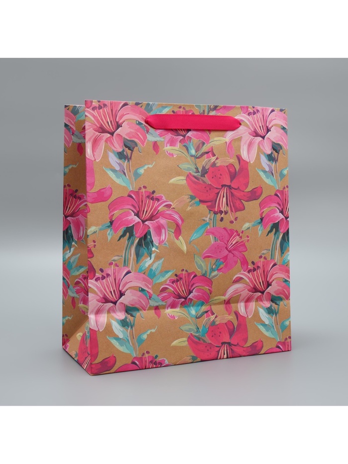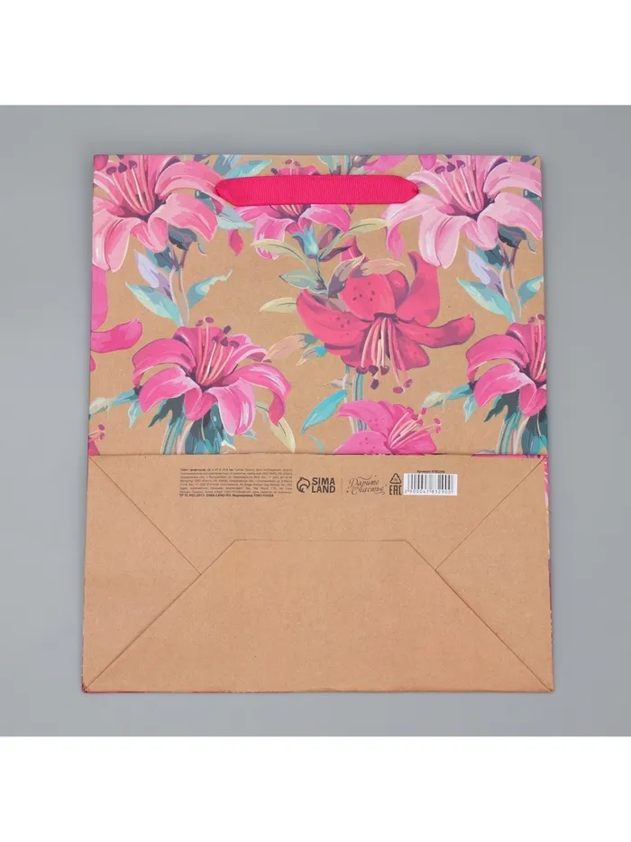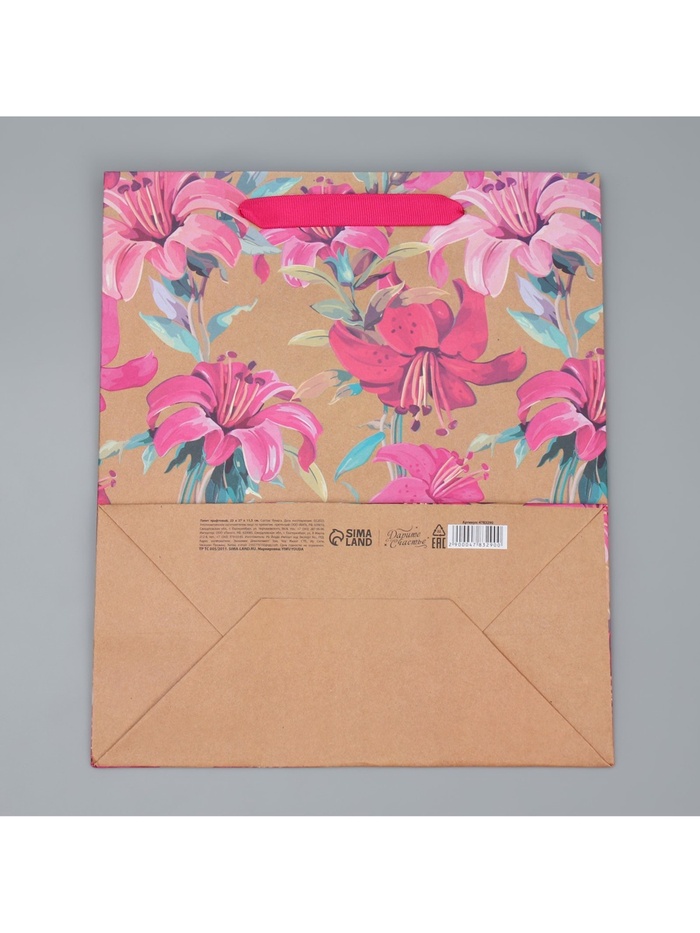 Пакет подарочный крафтовый, упаковка, «Цветы», ML 23 х 27 х 11.5 см — Характеристики