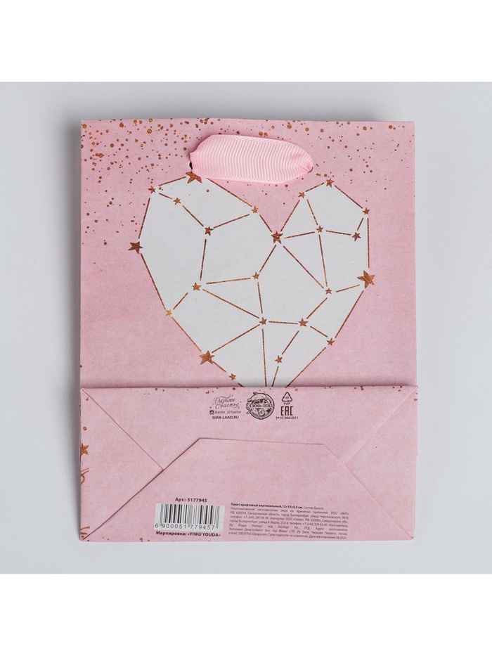 Пакет подарочный крафтовый, упаковка, «Ты моя Вселенная», S 12 х 15 х 5.5 см — Характеристики