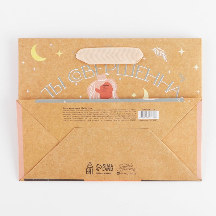 Пакет подарочный крафтовый, упаковка, «Ты совершенна», MS 23 х 18 х 8 см — Характеристики