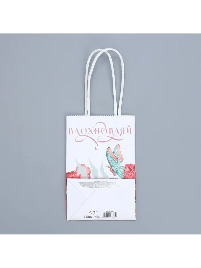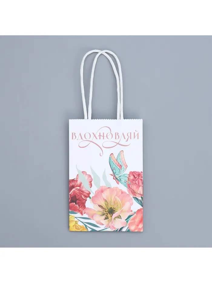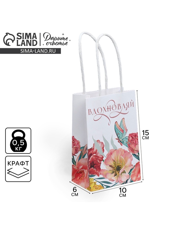 Пакет подарочный крафтовый, упаковка, «Вдохновляй», 15 х 10 х 6 см — Характеристики