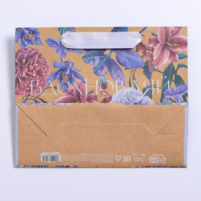 Пакет подарочный крафтовый, упаковка, «Вдохновляй», 22×17.5×8 см — Характеристики