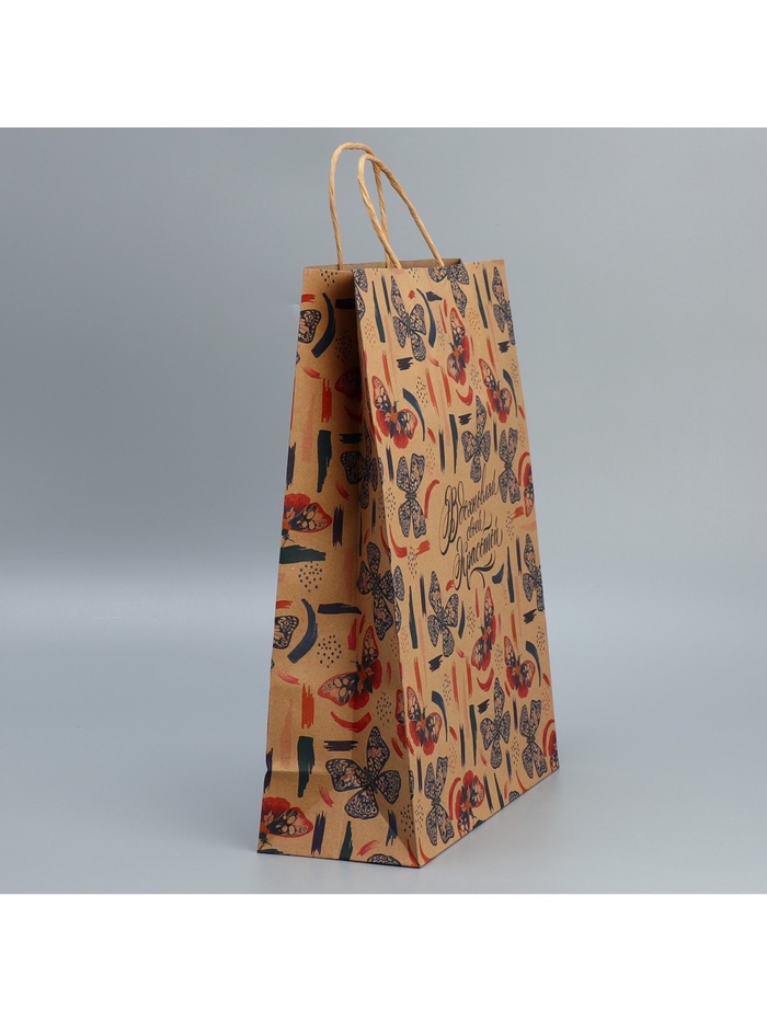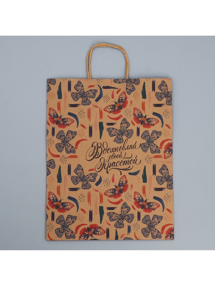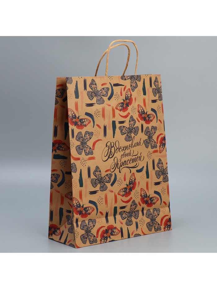 Пакет подарочный крафтовый, упаковка, «Вдохновляй», L 31 х 40 х 11.5 см — Характеристики