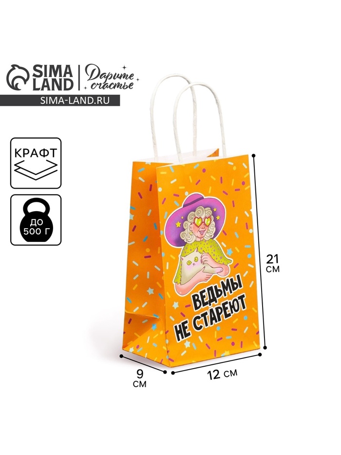 Пакет подарочный крафтовый, упаковка, «Ведьма», Хеллоуин, 12 х 21 х 9 см — Характеристики