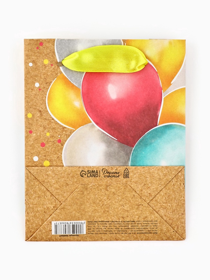 Пакет подарочный крафтовый, упаковка, «Весёлый праздник», S 12 х 15 х 5.5 см — Характеристики