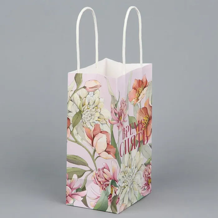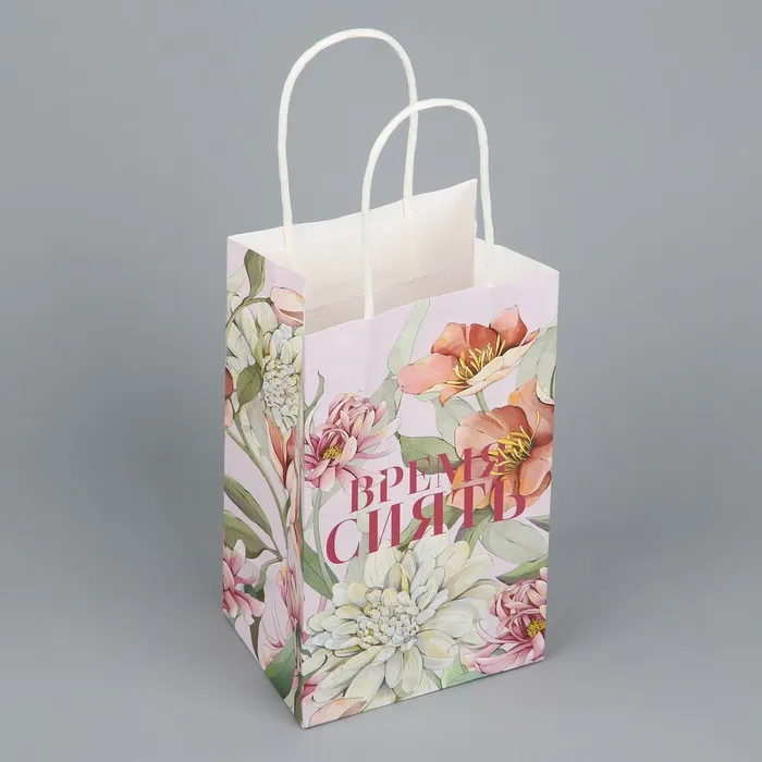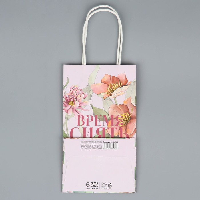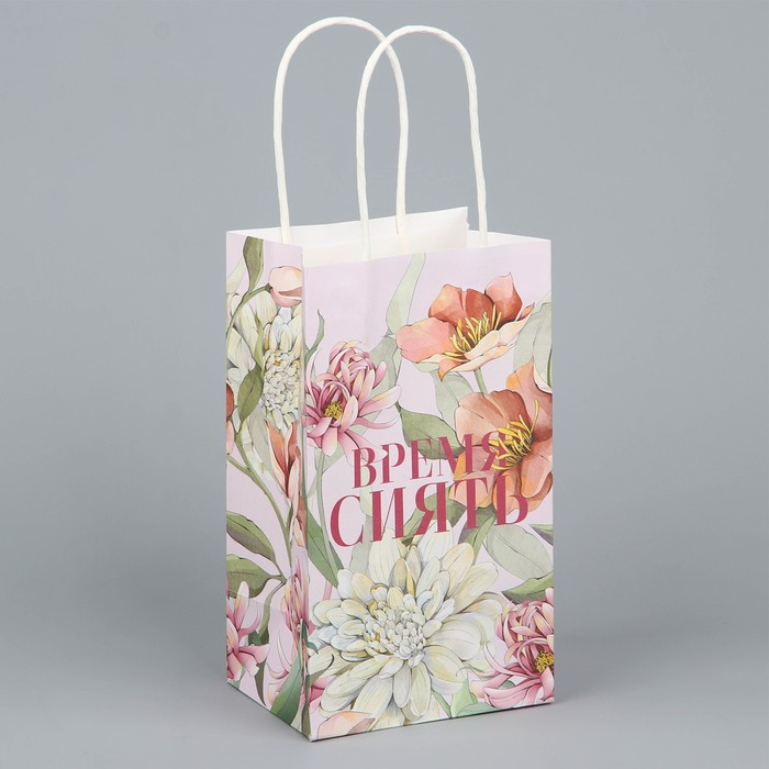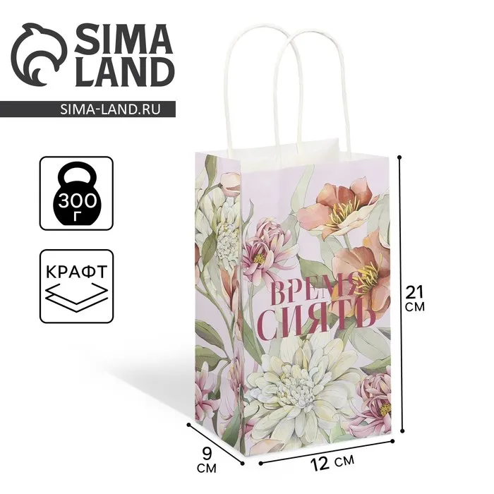 Пакет подарочный крафтовый, упаковка, «Время сиять», 12 х 21 х 9 см — Характеристики