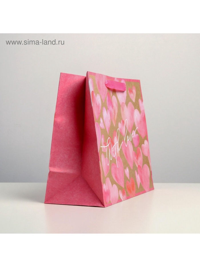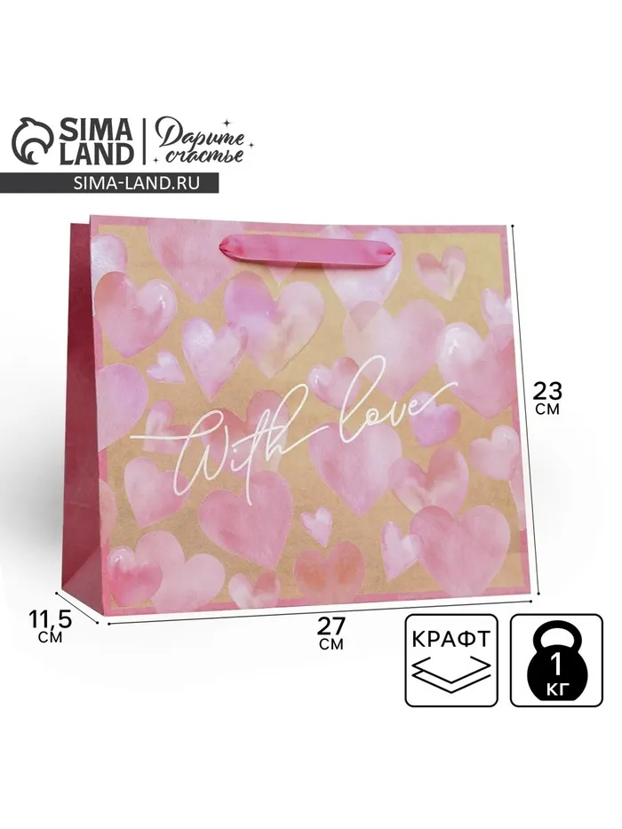 Пакет подарочный крафтовый, упаковка, With love, ML 27 х 23 х 11.5 см — Характеристики