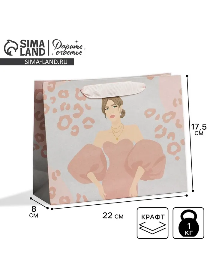 Пакет подарочный крафтовый, упаковка, «You», 22 х 17.5 х 8 см — Характеристики