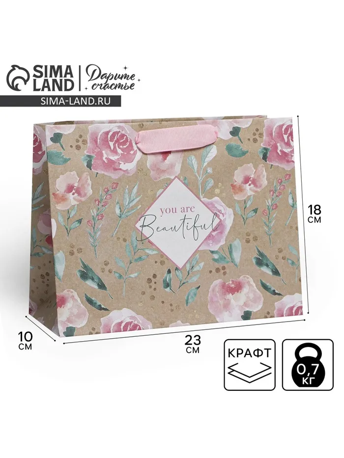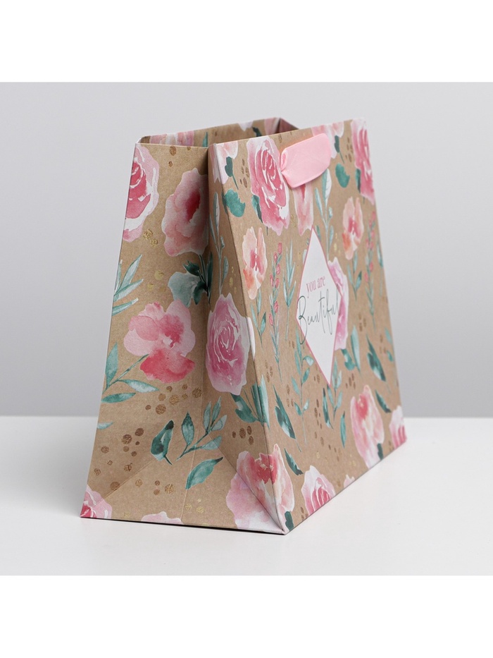 Пакет подарочный крафтовый, упаковка, You are beautiful, MS 23 х 18 х 10 см — Характеристики