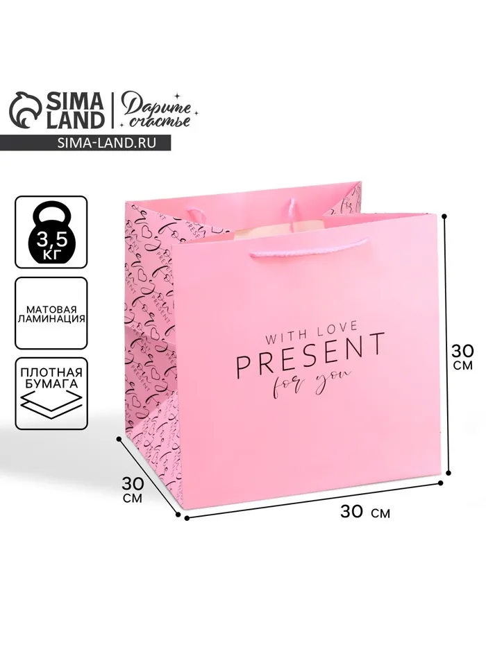 Пакет подарочный квадратный, упаковка, «Подарок для тебя», 30 х 30 х 30 см — Характеристики