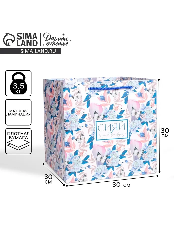 Пакет подарочный квадратный, упаковка, «Сияй», 30 х 30 х 30 см — Характеристики