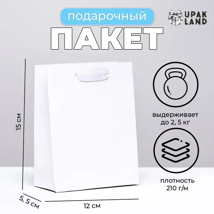 Пакет подарочный ламинированный «Белый», S 12×15×5.5 см — Характеристики