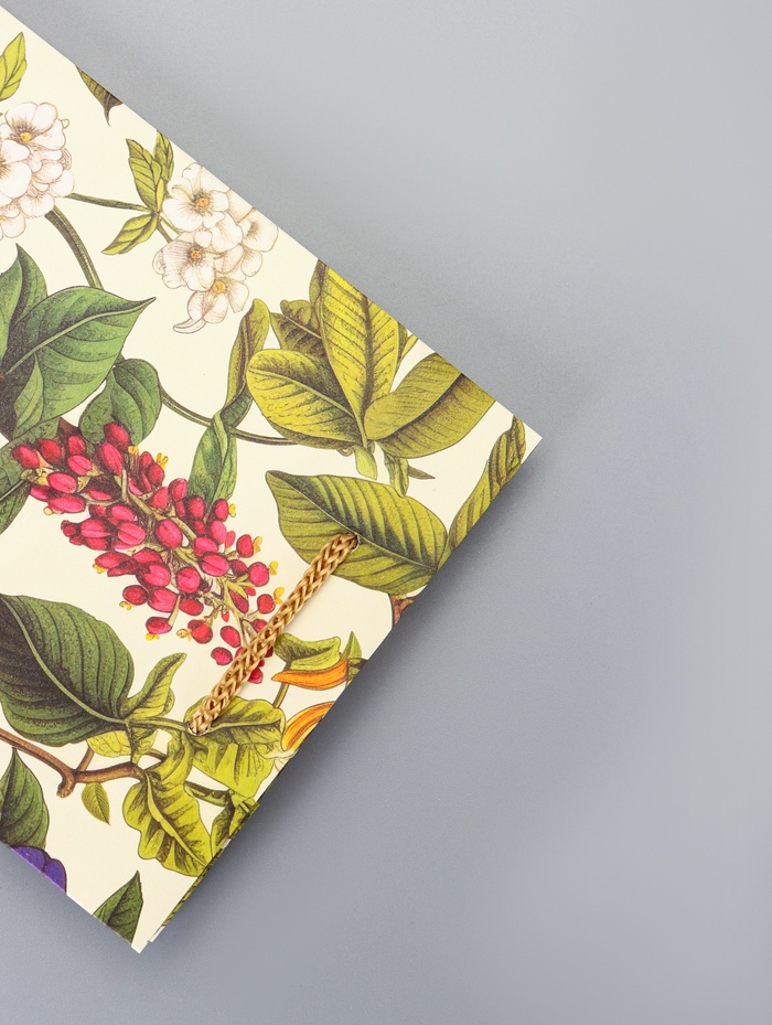 Подарочный пакет «Ботанический сад» малый – это компактная упаковка с натуралистичным дизайном для небольших подарков женщинам и девушкам. Пакет создает атмосферу научной иллюстрации и природной гармонии.