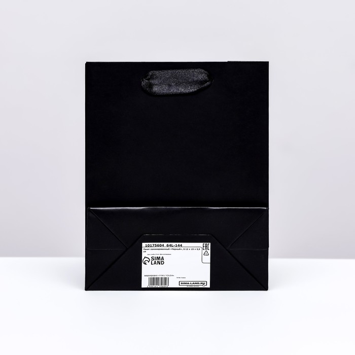 Пакет подарочный ламинированный «Чёрный», S 12×15×5.5 см — Характеристики