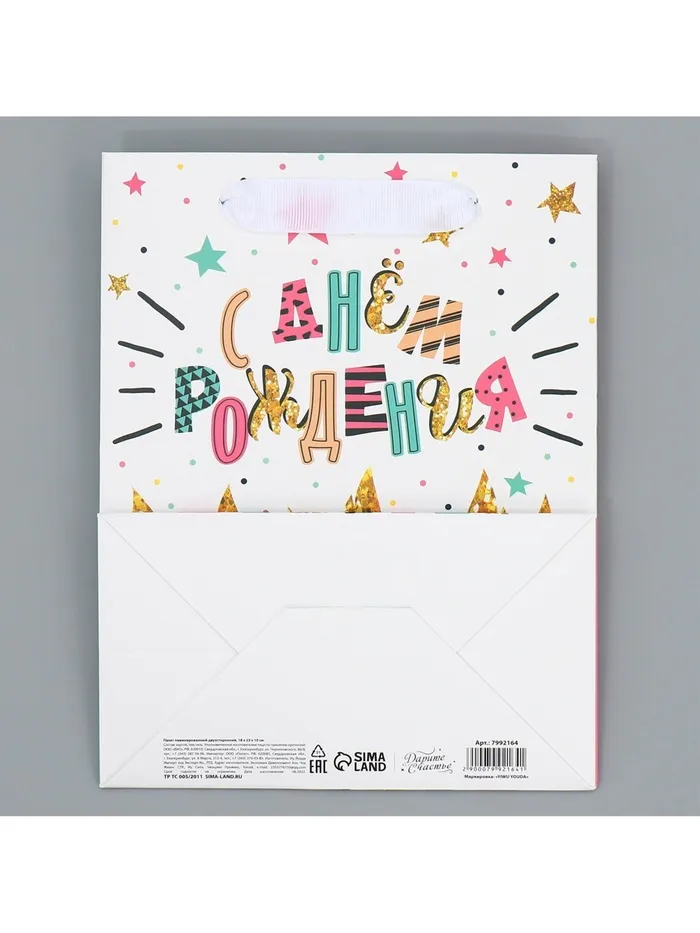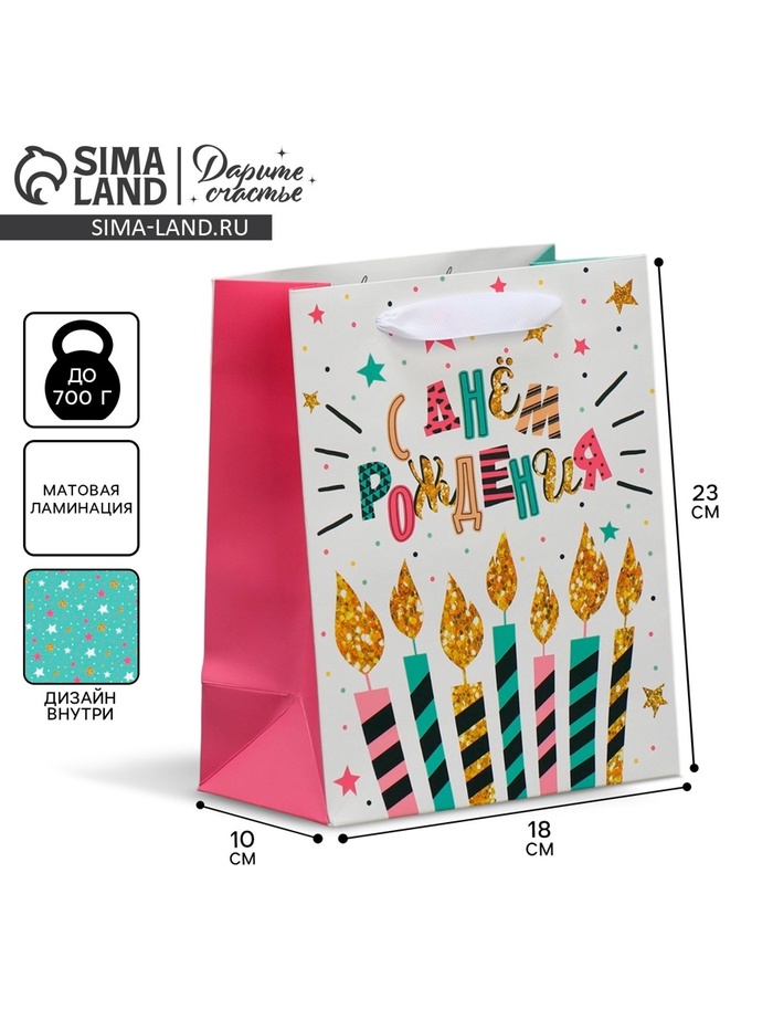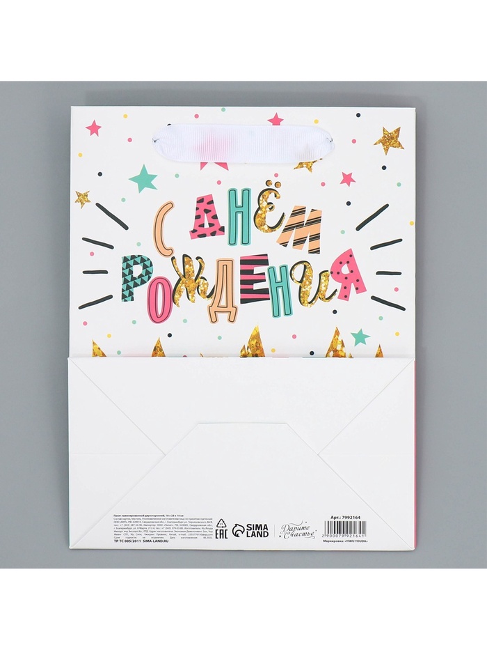 Пакет подарочный ламинированный двухсторонний, упаковка, «С Днем рождения», MS 18 х 23 х 10 см — Характеристики
