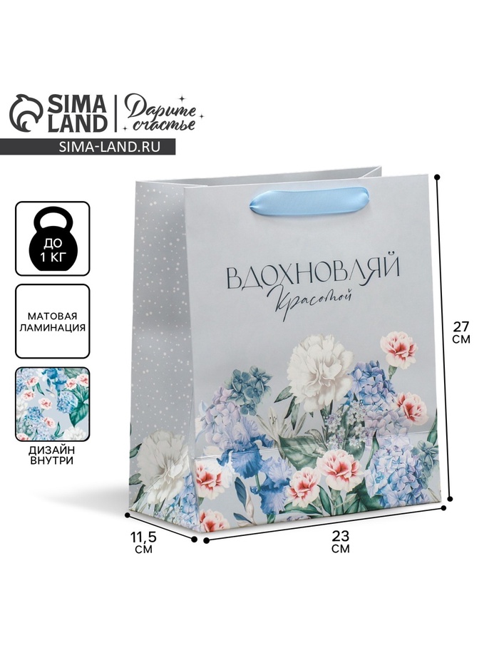 Пакет подарочный ламинированный двухсторонний, упаковка, «Вдохновляй», ML 23 х 27 х 11.5 см — Характеристики