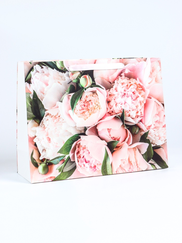 Пакет подарочный ламинированный горизонтальный «Белые бутоны», L 40×31×14 см — Характеристики