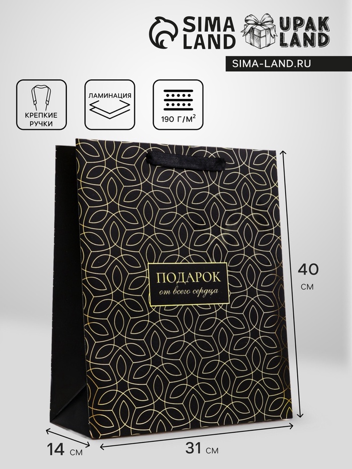 - Вместительный размер XXL: Габариты 61×46×20 см подходят для крупных подарков: пледов, комплектов постельного белья, больших мягких игрушек, бытовой техники или подарочных наборов. Пакет избавляет от поиска коробки нестандартного размера.