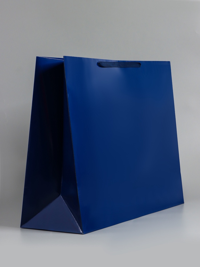 Вместительная упаковка для солидных подарков! Большой подарочный пакет «Синий глянец» формата XXL – это ламинированный пакет для объемных презентов. Его насыщенный цвет и глянцевый блеск создают ощущение праздника и значимости момента.