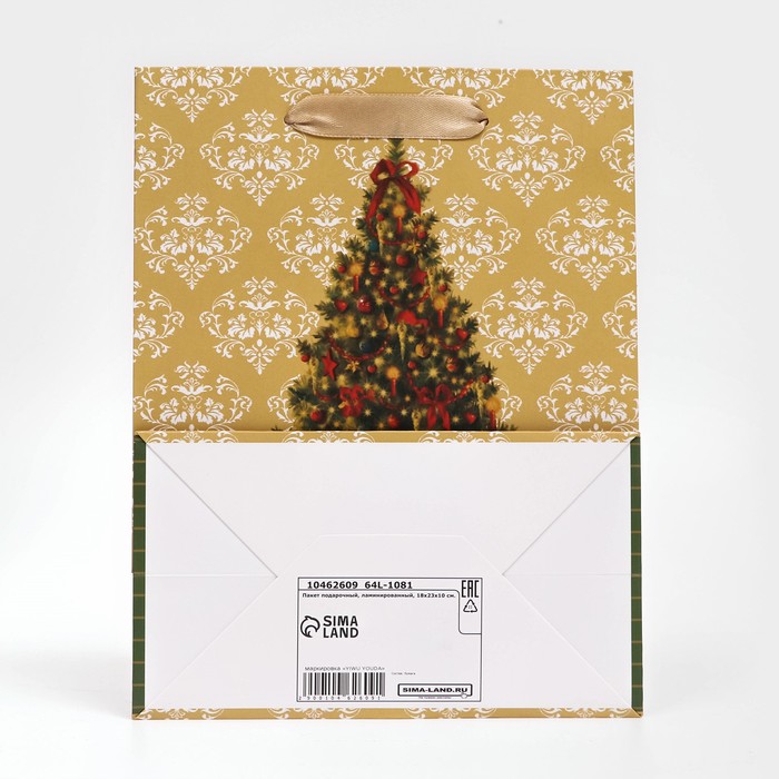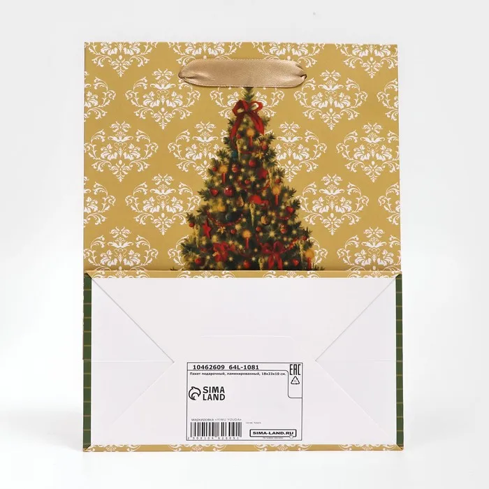 Пакет подарочный, ламинированный, «Ёлочка с подарками»,18×23×10 см — Характеристики