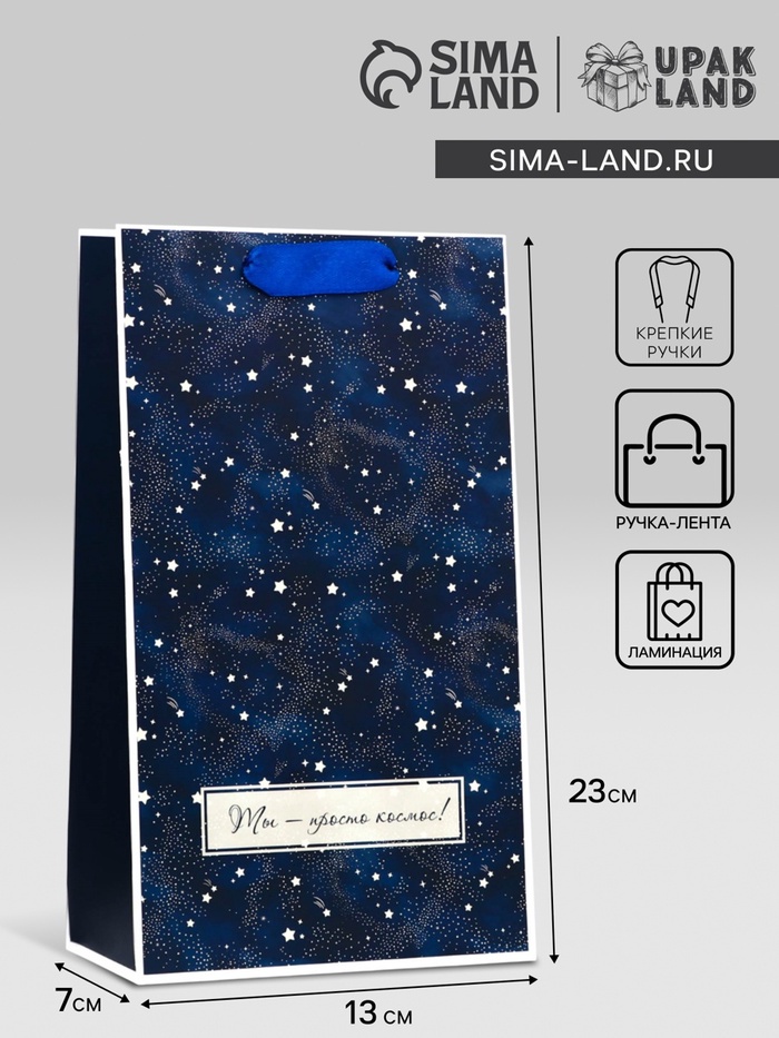 Пакет подарочный ламинированный «Космос», 13×23×7 см — Характеристики