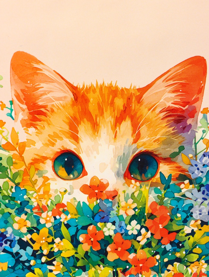 - Милый дизайн с котенком: Изображение котенка в обрамлении цветов создает трогательный и уютный образ. Рисунок вызывает теплые эмоции и улыбку.