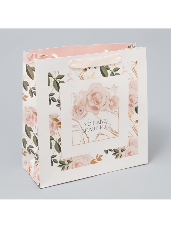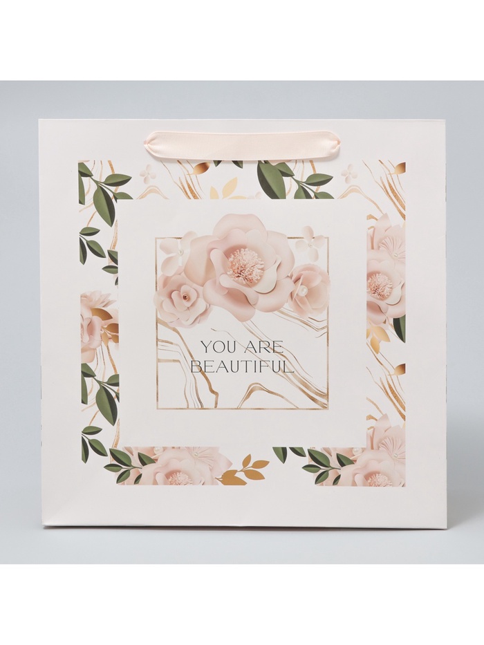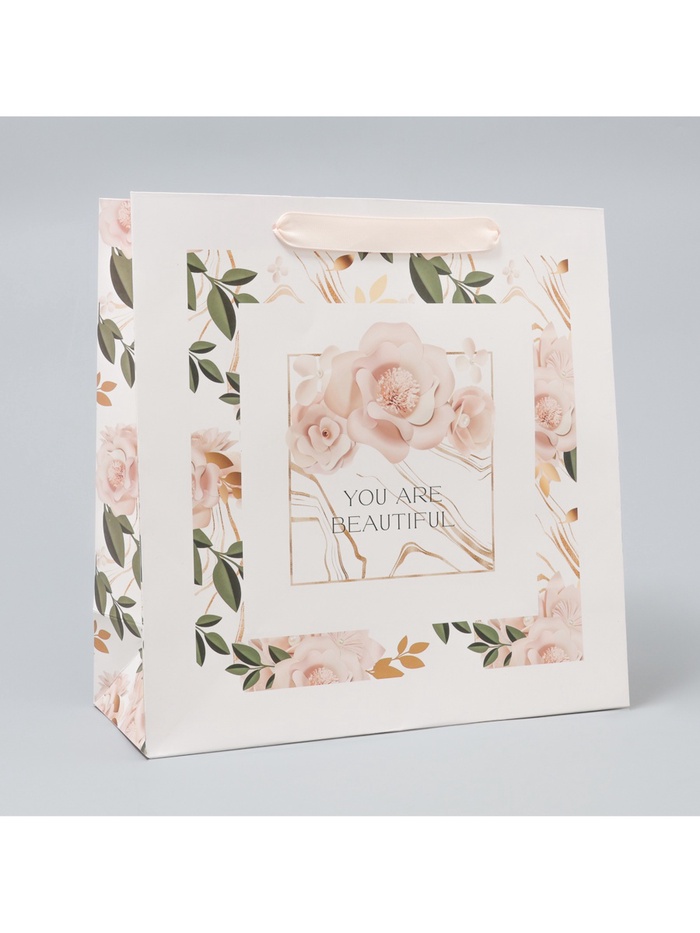 Пакет подарочный ламинированный квадратный, упаковка, «Beautiful», 30×30×12 см — Характеристики