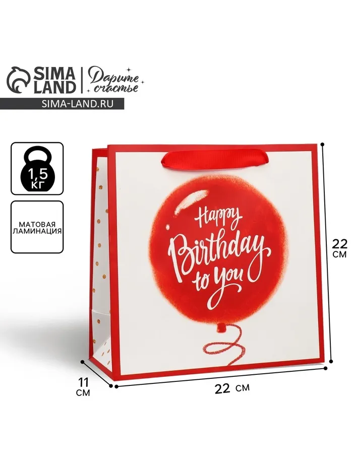 Пакет подарочный ламинированный квадратный, упаковка, «Хеппи пездей», 22 х 22 х 11 см — Характеристики