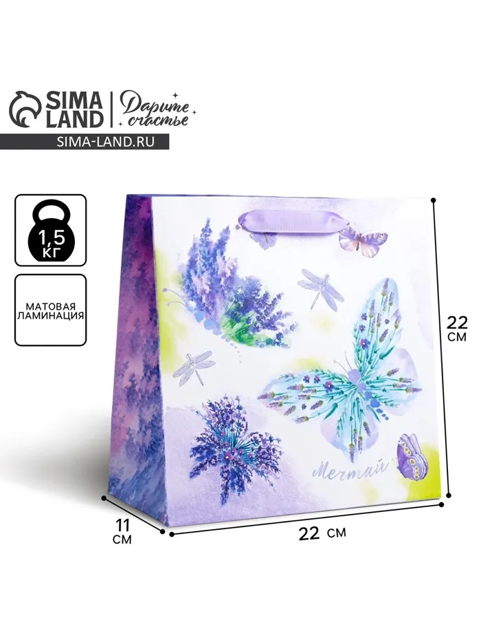 Пакет подарочный ламинированный квадратный, упаковка, «Лавандовая легкость», 22 х 22 х 11 см — Характеристики