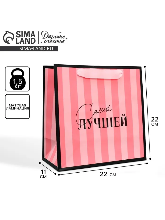 Пакет подарочный ламинированный квадратный, упаковка, «Лучшая», 22 х 22 х 11 см — Характеристики