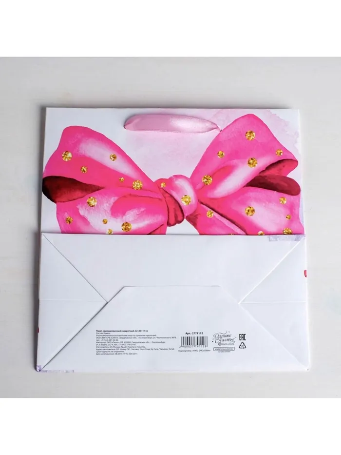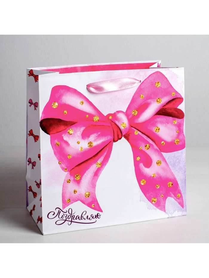 Пакет подарочный ламинированный квадратный, упаковка, «Поздравляю!», 22 х 22 х 11 см — Характеристики