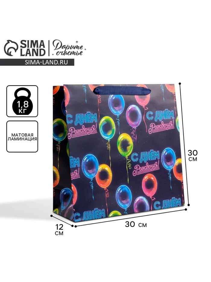 Пакет подарочный ламинированный квадратный, упаковка, С Днем Рождения!, 30 х 30 х 12 см — Характеристики