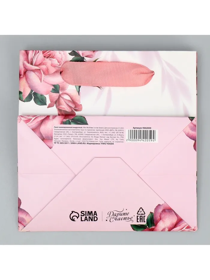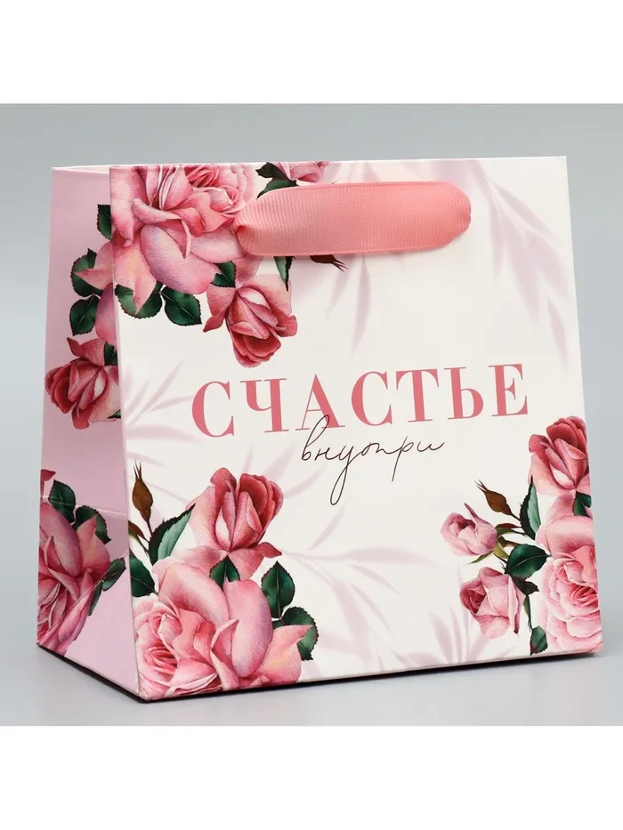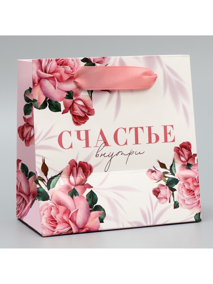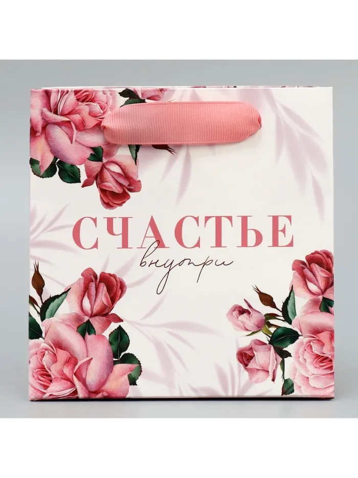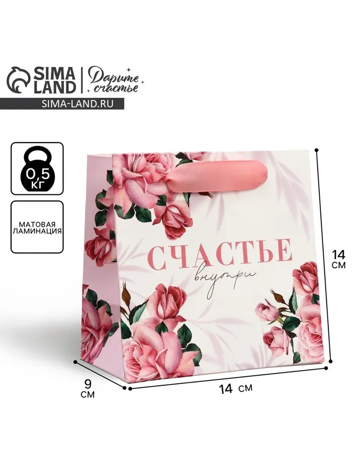 Пакет подарочный ламинированный квадратный, упаковка, «Счастье внутри», 14 х 14 х 9 см — Характеристики