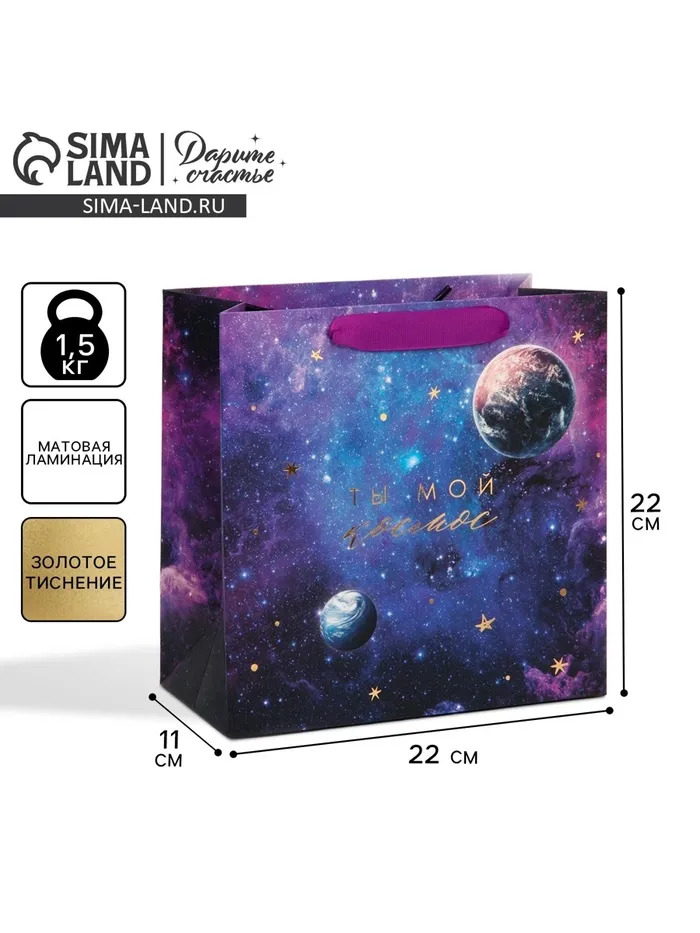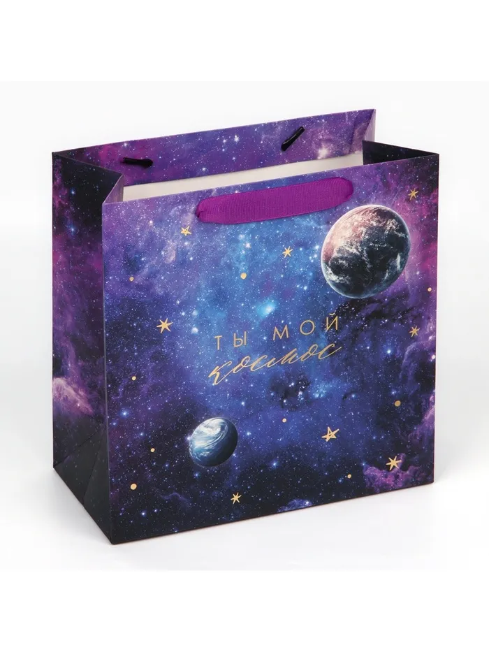 Пакет подарочный ламинированный квадратный, упаковка, «Ты мой космос», 22 х 22 х 11 см — Характеристики