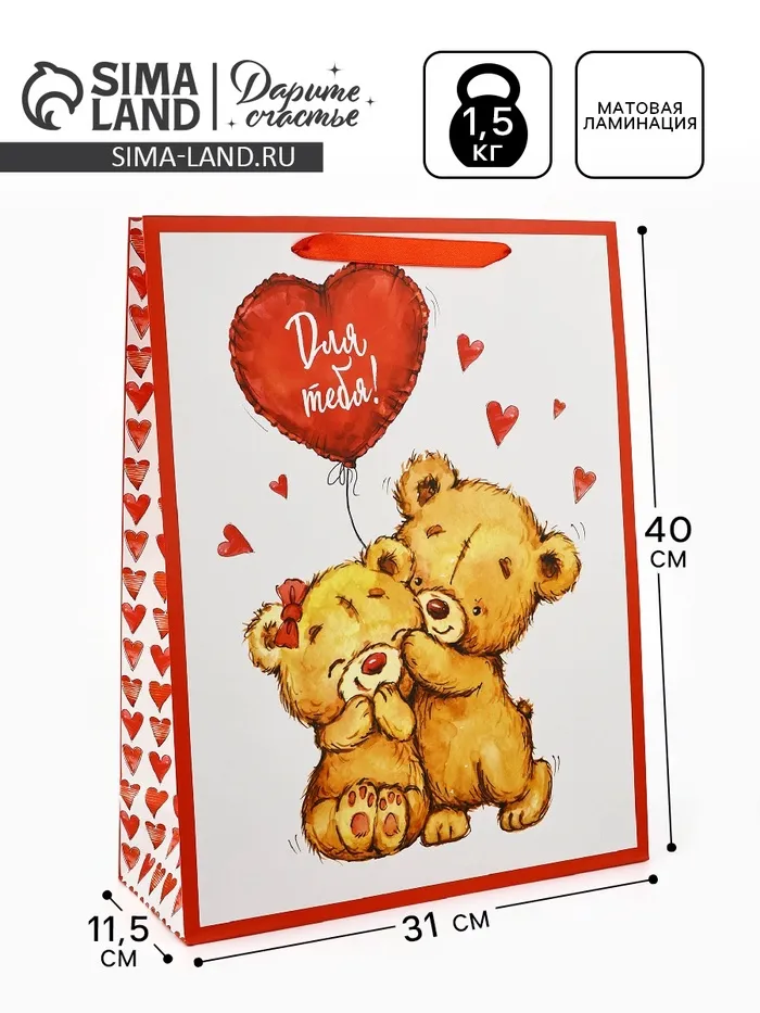 Пакет подарочный ламинированный «Люблю», L 40 х 31 х 11.5 см — Характеристики