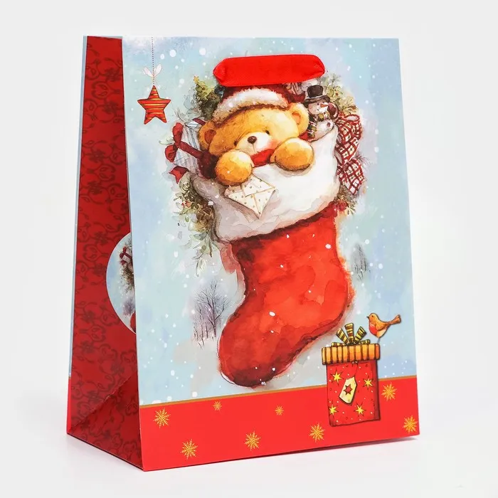 Подарочный пакет, ламинированный и новогодний, размером 18 х 23 х 10 см — это идеальный выбор для упаковки ваших праздничных сюрпризов. Этот пакет сочетает в себе практичность и элегантный дизайн, который украсит любой подарок и создаст особую атмосферу волшебства и радости.