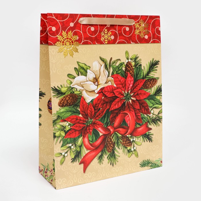 Пакет подарочный ламинированный новогодний «Цветы»,31×40×11.5 см — Характеристики