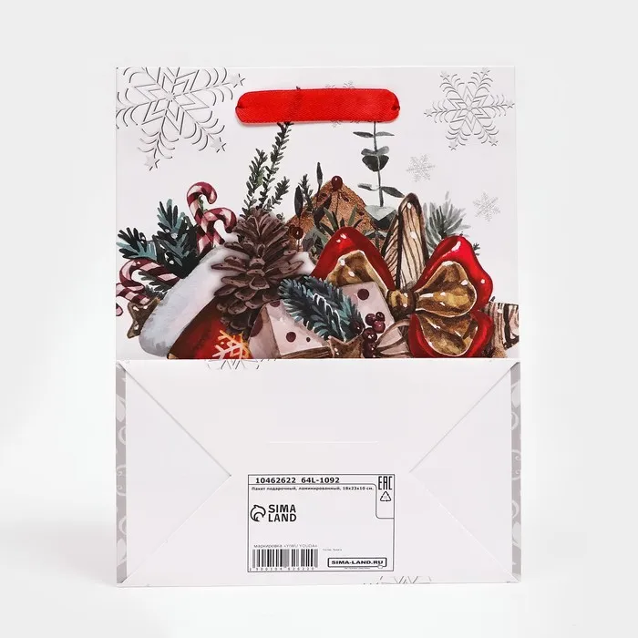 Подарочный пакет, ламинированный и новогодний, размером 18 х 23 х 10 см — это идеальный выбор для упаковки ваших праздничных сюрпризов. Этот пакет сочетает в себе практичность и элегантный дизайн, который украсит любой подарок и создаст особую атмосферу волшебства и радости.